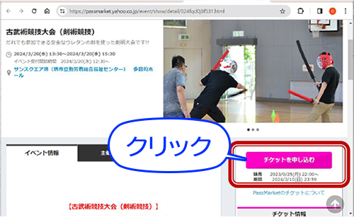 ①画面右側 【チケットを申し込む】をクリックしてください