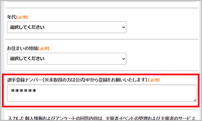 選手登録ナンバーは ここに入力します